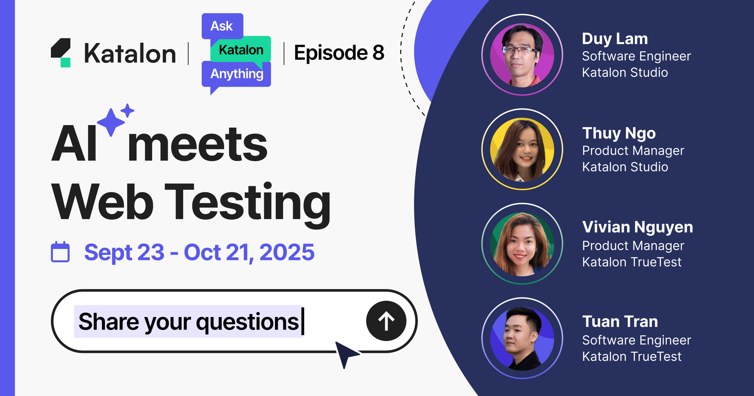 So jump in with your toughest questions, your burning “what ifs,” and even that one tricky bug you can’t shake. These are real conversations with the people building Katalon with you. ![]()