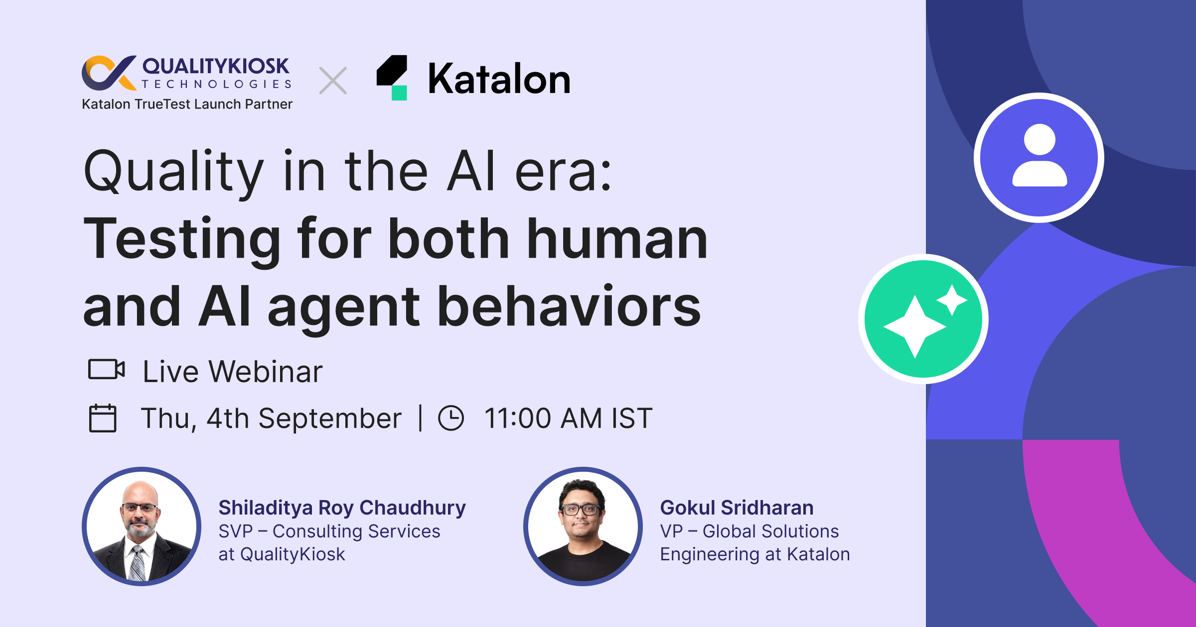 Join us to discover how AI-native automation from Katalon, combined with QualityKiosk’s domain-led approach, is reshaping testing for both human and AI agentic interactions.