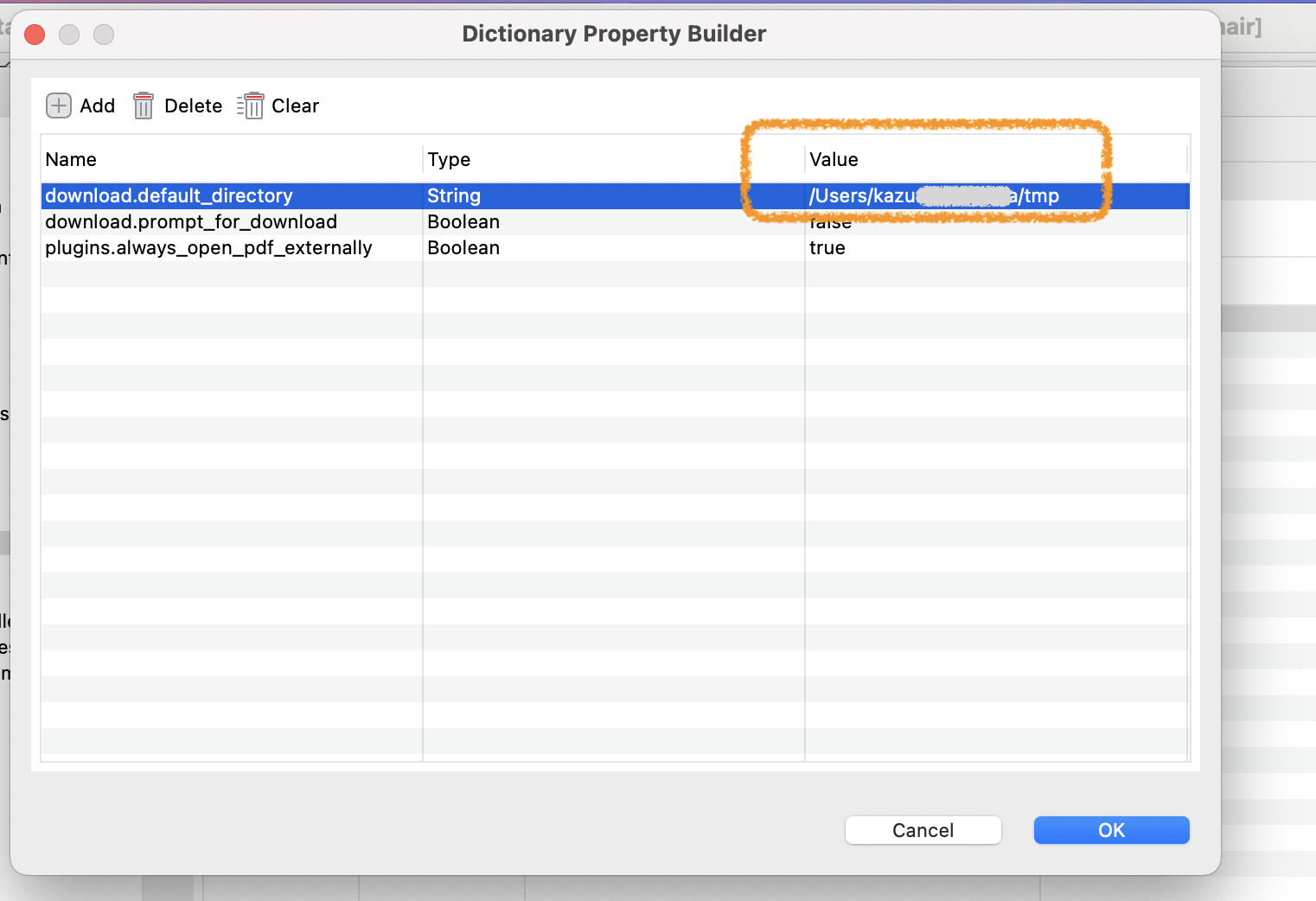 I gave double click on the Value field of the row; I intended to edit the value from ‘/Users/kazurakiurayama/tmp’ to /Users/kazurayam/tmp;