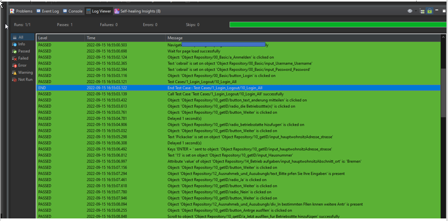 In Console and Tree View, everything is normal. But in Log Viewer I can only see basic steps like Call-Test case. As a solution :