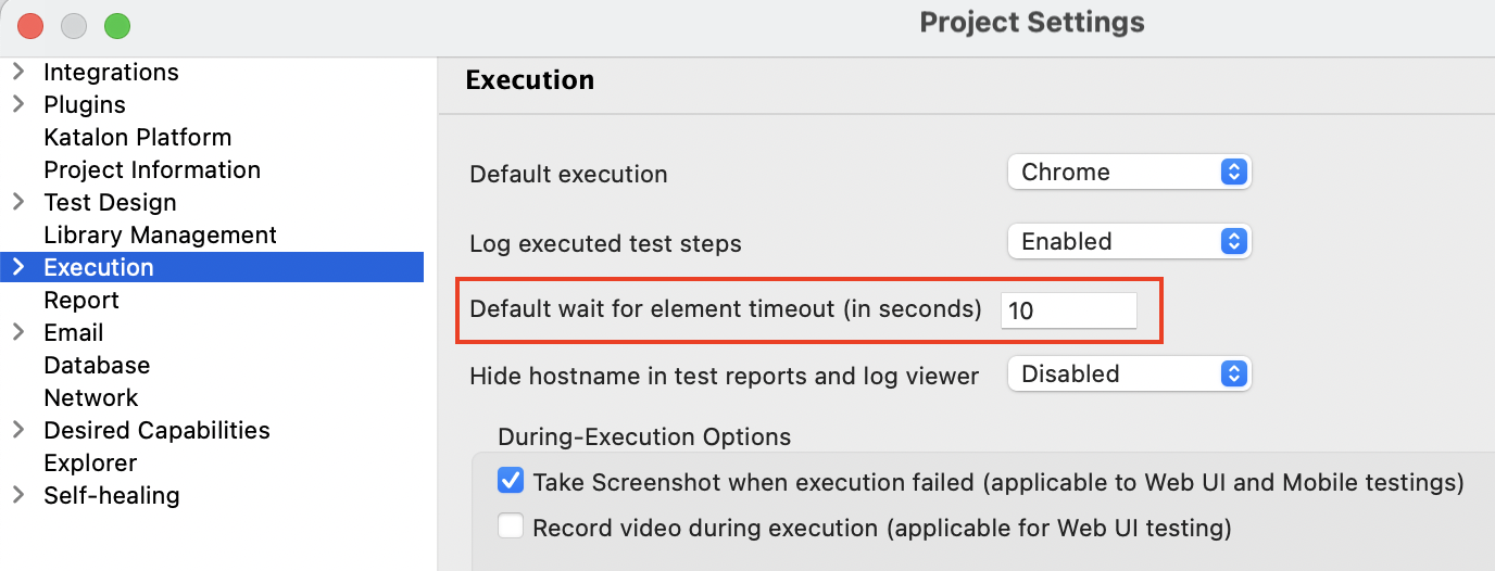 In addition, the default wait timeout has been reduced from 30s to 10s, and it can now be configured in Project Settings > Execution.