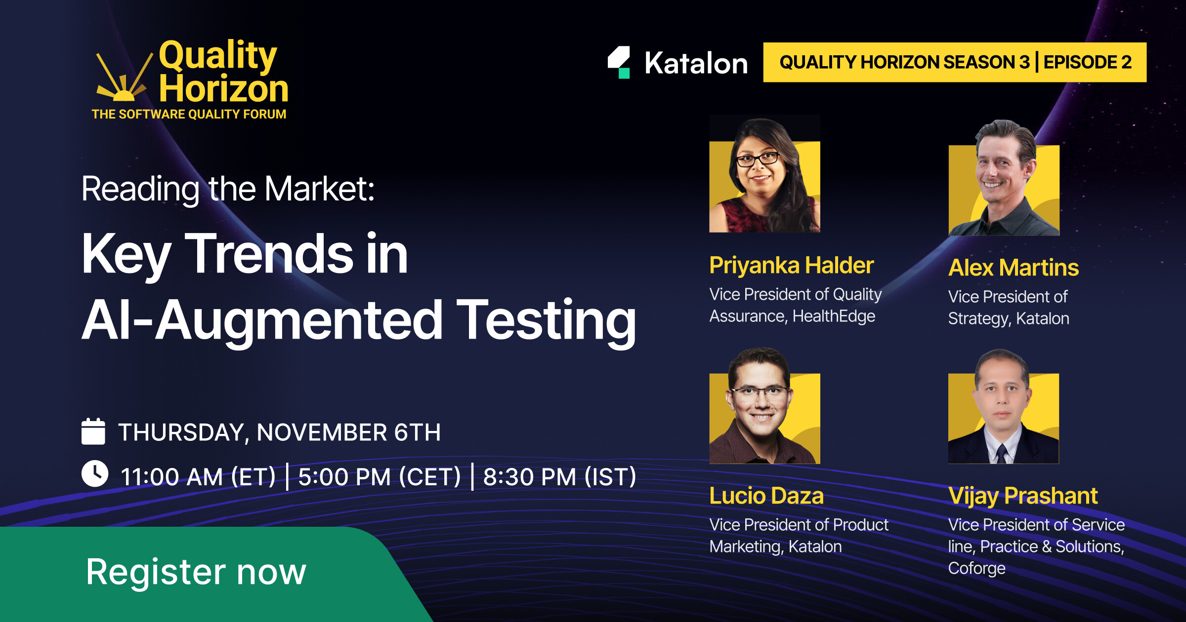 In this Quality Horizon Season 3 Episode 2: Reading the Market: Key Trends in AI-Augmented Testing, QA and engineering leaders share how to read market trends, spot real AI innovation, and strengthen governance without slowing delivery.