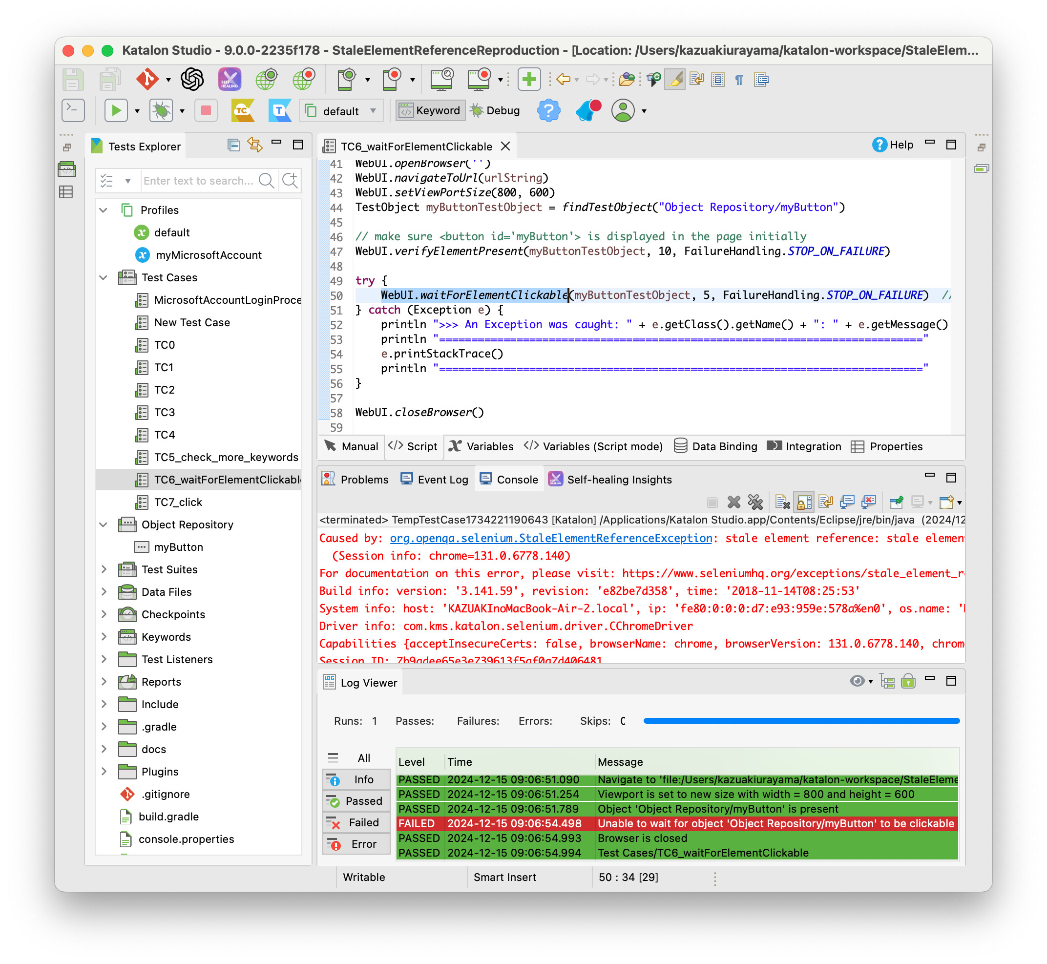 Katalon Studio Fails to Handle StaleElementReferenceException