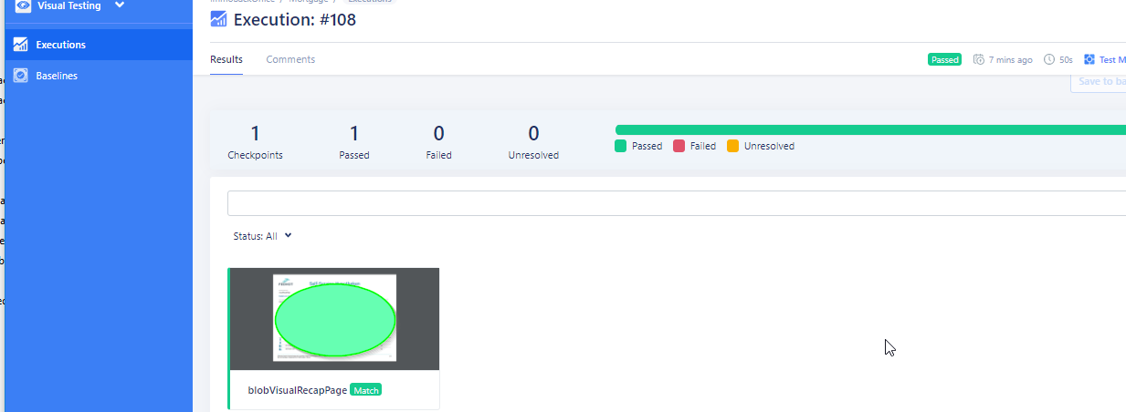 So we will have no failure in the test management executions, but we will have to monitor this in the visual testing executions. Isn’t there a way to make the test case fail in the test management executions, or make it at least visual over there?
